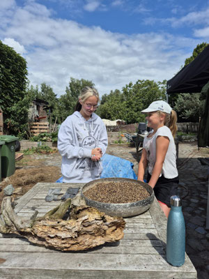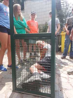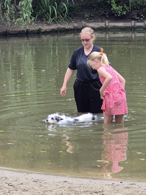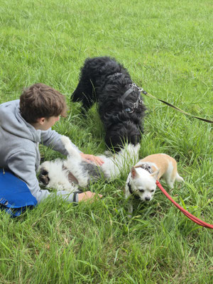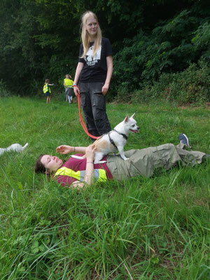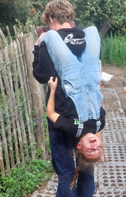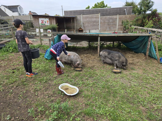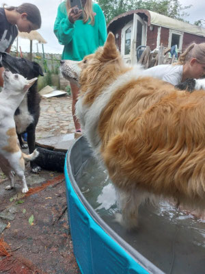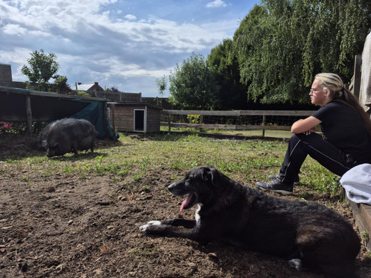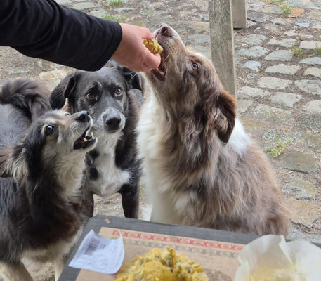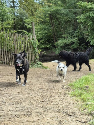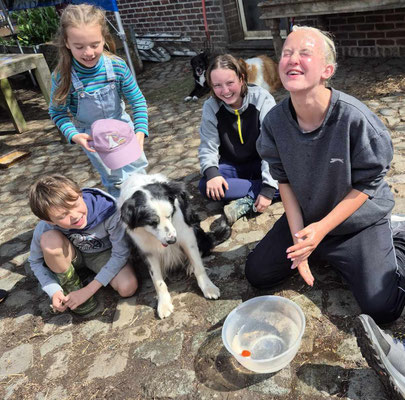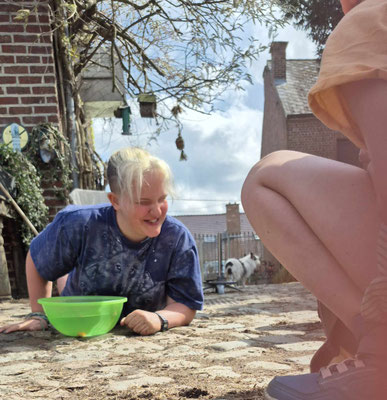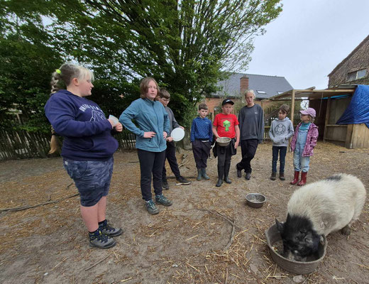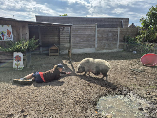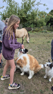 Kwispelende staarten, natte neuzen, vrolijk staan ze allen klaar om jullie te ontvangen in de roedel. Maar pas op , in de roedel , gelden de roedelregels. Onze honden nemen jullie graag mee op wandeling, door de velden, boomgaarden, bossen ….en ja, voor de lieve Swiff mag er ook wel een beekje zijn waar we wat spetteren en ploeteren kunnen. Ze testen ook graag jullie agilityskills uit . En proeven met plezier jullie vers gebakken koekjes uit. Verwennerij, een zalige hoofdmassage of stevige borstelbeurt, het hoort er allemaal bij. Een kampje tussen en met de honden , met in de ochtend ook de nodige zorgen voor de andere Pantoufdieren uiteraard.